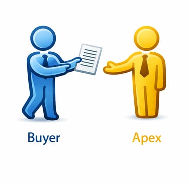 Buyer involvement is intentionally limited to defining requirements and evaluating counterpart fit. Apex does not manage transactions or negotiate terms, but focuses on ensuring that initial connections are commercially relevant and efficient.