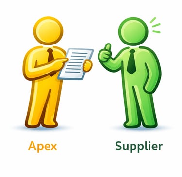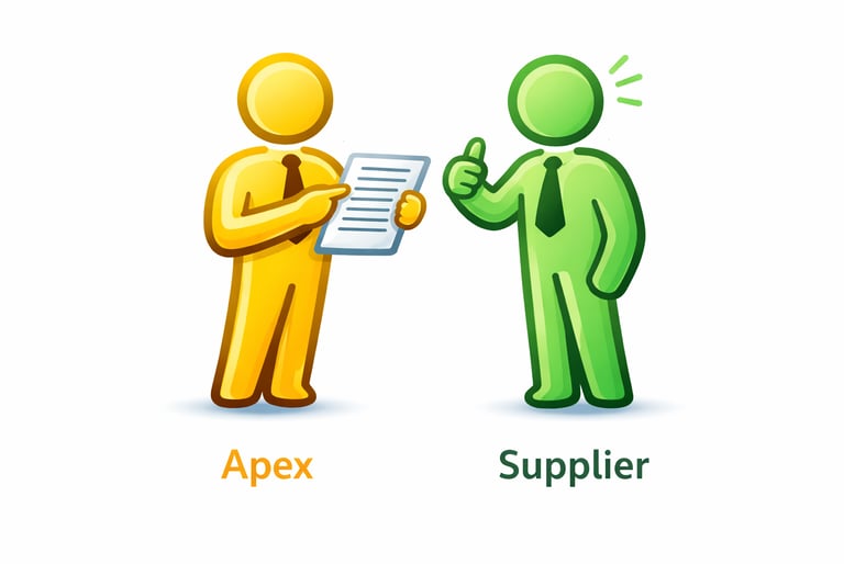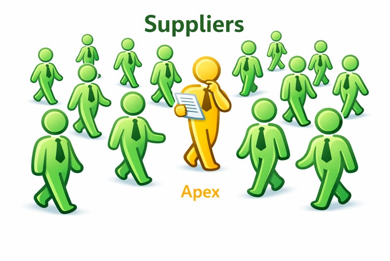 Buyers and suppliers proceed independently at their discretion. Apex does not participate in negotiations, contract execution, logistics, payment handling, or transaction settlement.